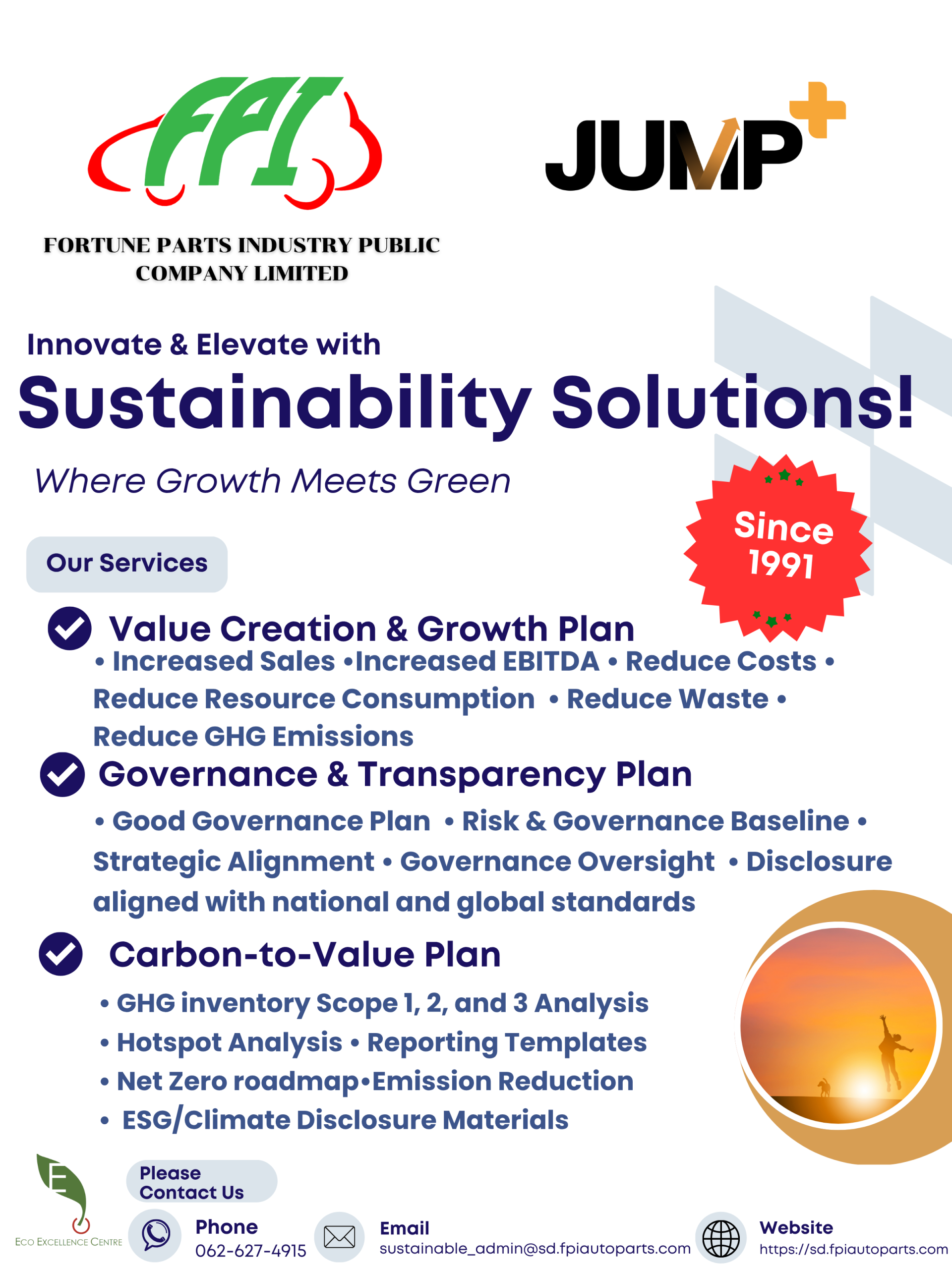 โครงการ JUMP+ ไม่ได้มุ่งเน้นเพียงผลกำไรในระยะสั้น แต่คือการสร้าง พิมพ์เขียวแห่งการเติบโตที่ยั่งยืน โดยผสานความแข็งแกร่งของแผนธุรกิจ เข้ากับความน่าเชื่อถือของแผนธรรมาภิบาล และแผน Climate Action เพื่อสร้างองค์กรต้นแบบในทุกมิติ
